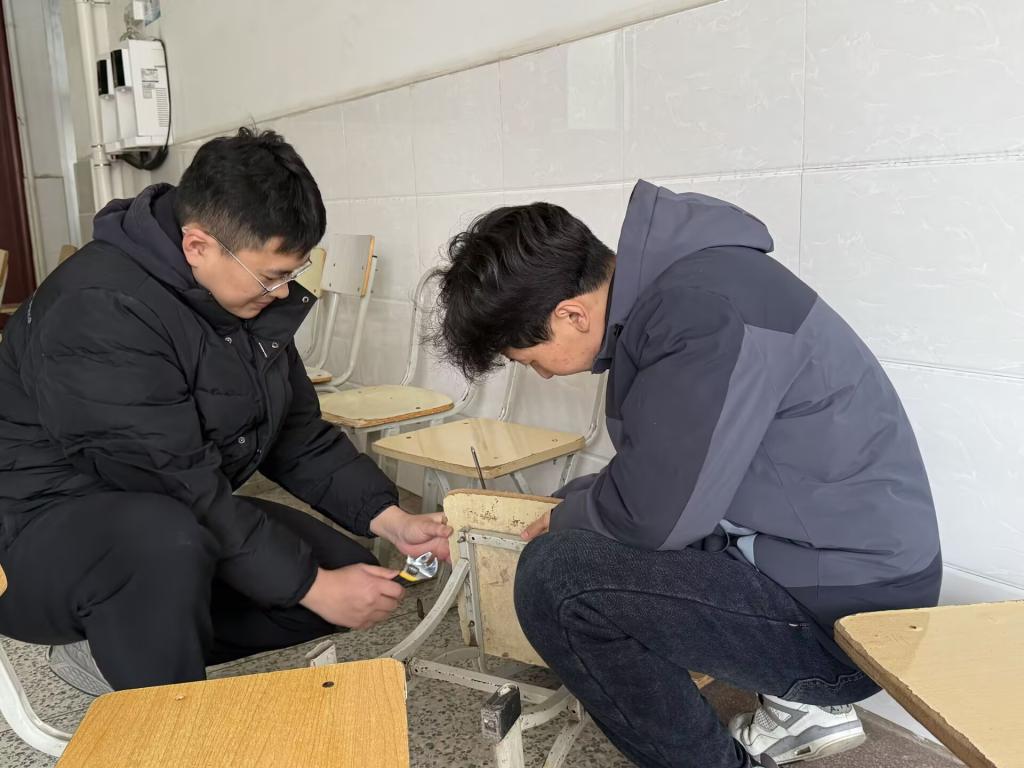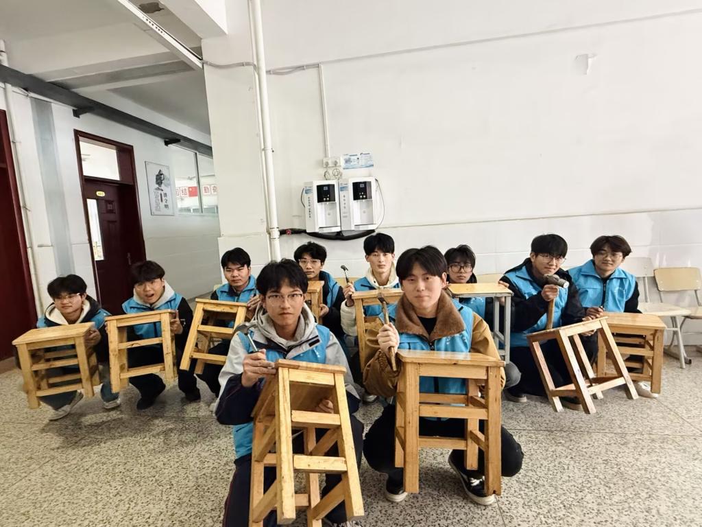 在党员的示范引领与悉心指导下,20名学生志愿者辅助开展工具传递、座椅搬运、现场清理等工作,近距离感受党员同志的责任担当与奉献精神,在实践中接受党性教育,学习服务意识。经过集中劳作,教学楼内大批破损椅子全部修复完毕,有效解决了教室座椅影响学生上课的实际问题,为师生打造了更舒适、安全的学习环境。